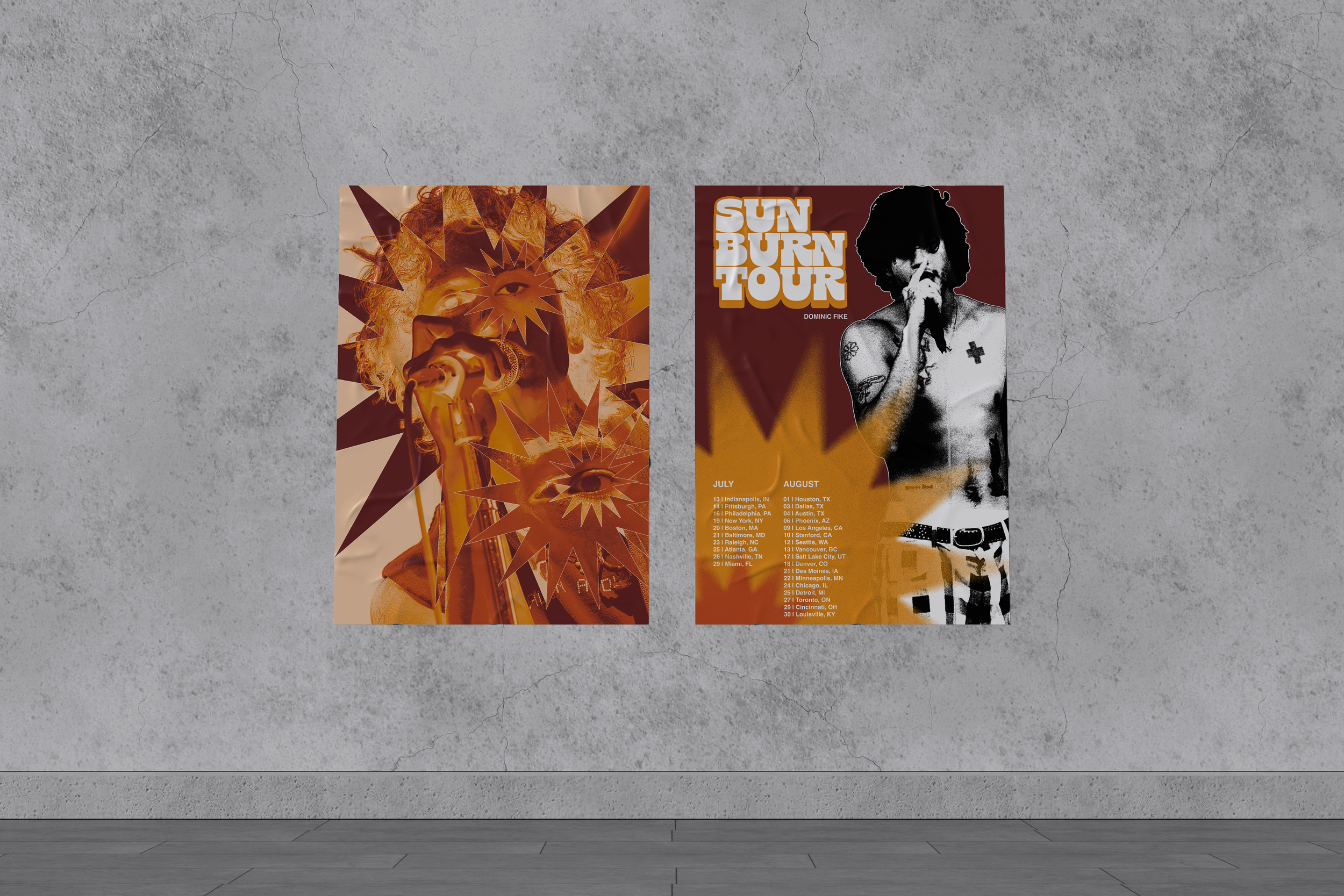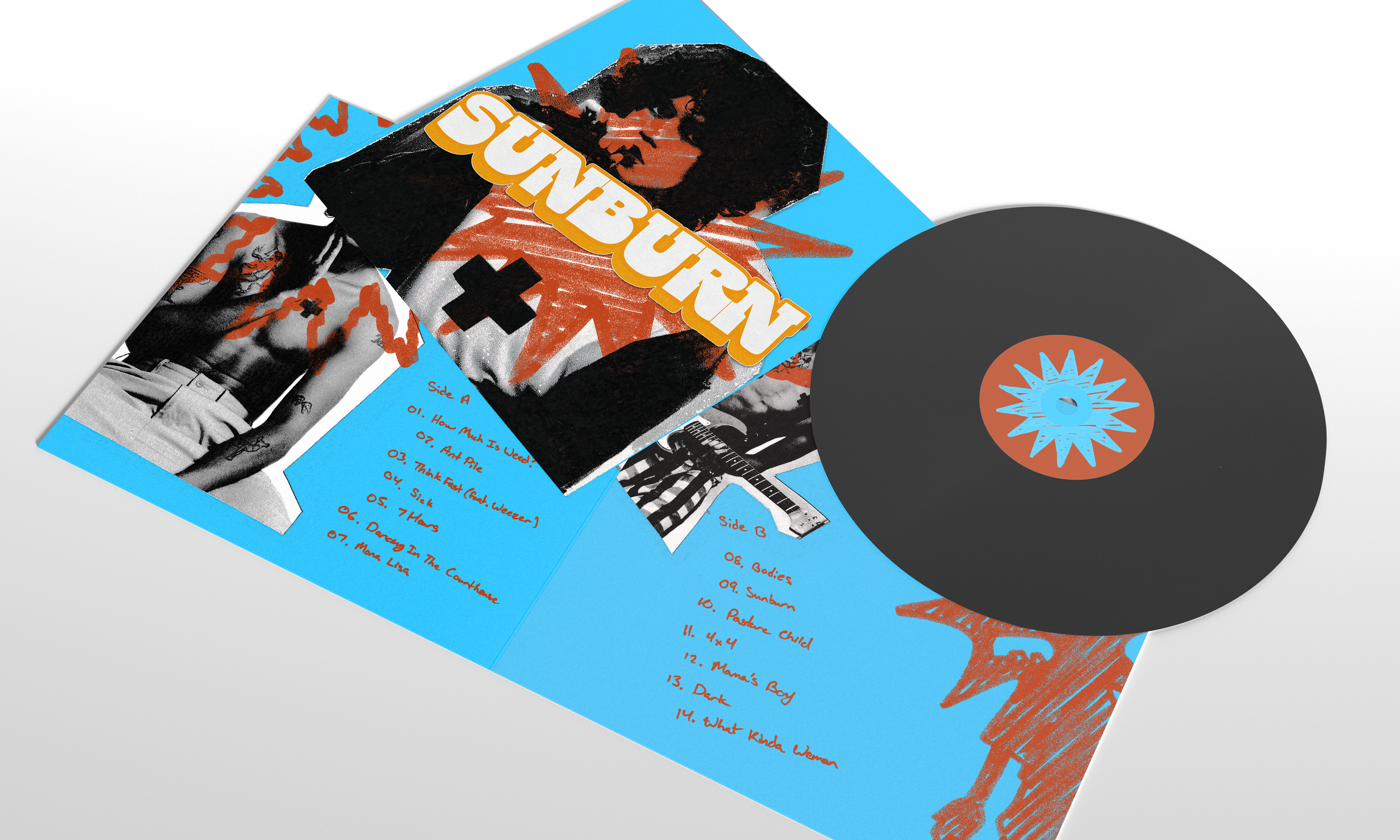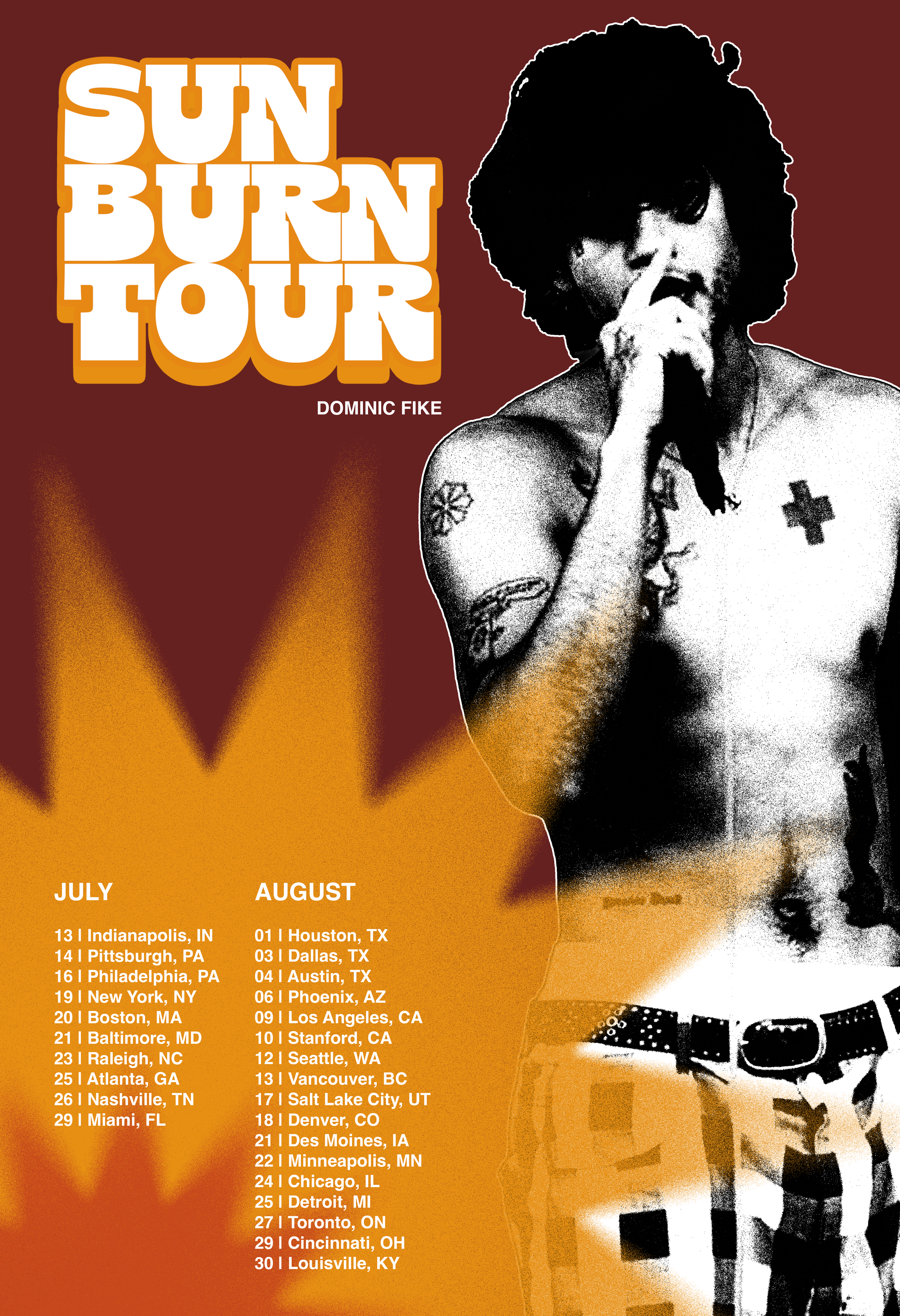 I redesigned the cover and merchandise line for Sunburn by Dominic Fike to better portray the feeling and visuals the songs on the album give the listener.
